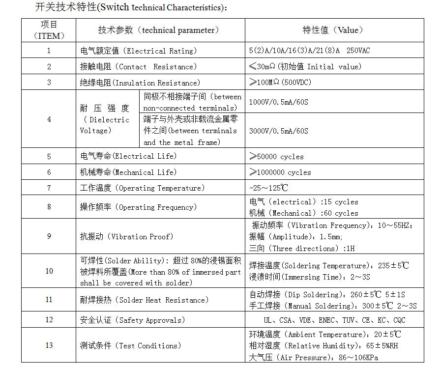 | 11 | ဂဟေဆော်အပူခုခံ | Dip Soldering: 260 ± 5 ℃ 5 ± 1s လက်စွဲစာအုပ် soldering: 300 ± 5 ℃ 2 ~ 3s |