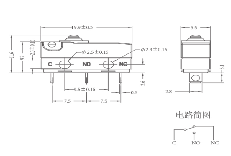 | 2 | operating force | 1.0 ~ 2.5n | |