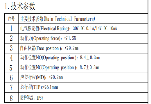 1 | လျှပ်စစ်အဆင့်သတ်မှတ်ချက် | 10VA 14V DC / 0.1A 30vdc | |